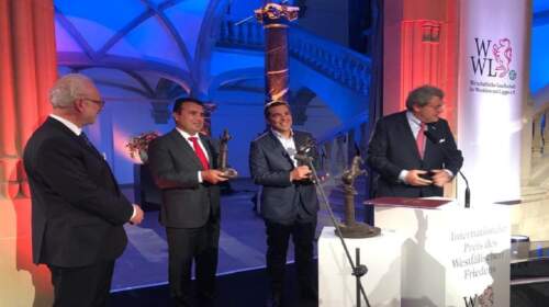 «Στόχος της Συμφωνίας των Πρεσπών ήταν να ριζώσει βαθειά στις συνειδήσεις των λαών μας και στις σχέσεις των χωρών μας», ανέφερε ο πρόεδρος του ΣΥΡΙΖΑ, Αλέξης Τσίπρας κατά την τελετή ανάληψης του βραβείου Βεστφαλίας, από κοινού με τον πρωθυπουργό της Βόρειας Μακεδονίας, Ζόραν Ζάεφ. «Η Συμφωνία των Πρεσπών μπορεί να συνεισφέρει σημαντικά σε ένα νέο ευρωπαϊκό και παγκόσμιο όραμα, ως…
