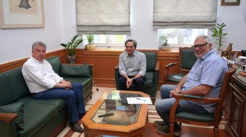 Με τον Πρύτανη του Πολυτεχνείου Κρήτης Μιχάλη Ζερβάκη συναντήθηκε σήμερα ο Περιφερειάρχης Κρήτης Σταύρος Αρναουτάκης. Στη συνάντηση συζητήθηκαν θέματα που αφορούν τις δράσεις που αναπτύσσει το Πολυτεχνείο Κρήτης καθώς και έργα και υποδομές του Ιδρύματος. Στη συνάντηση μετείχε και ο Αντιπρύτανης Έρευνας και Καινοτομίας του Πολυτεχνείου Κρήτης, Κωνσταντίνος – Αλκέτας Ουγγρίνης.