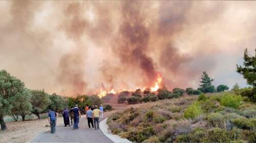 (Φωτογραφία από τη μεγάλη πυρκαγιά στη Ρόδο, της Χρύσης Βιτσιλάκης – πηγή: εφημερίδα Ροδιακή) Ανεξέλεγκτη για πέμπτη μέρα παραμένει η πυρκαγιά στο νησί της Ρόδου παρά τις προσπάθειες των πυροσβεστικών δυνάμεων και των εθελοντών. Η κατάσταση θεωρείται ιδιαίτερα σοβαρή λόγω και των ανέμων που πνέουν στην περιοχή οι οποίοι δυσχεραίνουν το έργο της πυρόσβεσης. Δείτε: Ανεξέλεγκτη η φωτιά στη Ρόδο, εκκενώθηκαν δύο ακόμα…