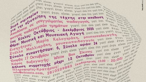 Τον 1ο κύκλο της σειράς σεμιναρίων «Απαπαγαλία» για την αξιοποίηση της τέχνης στην εκπαίδευση που διοργανώνει το Κέντρο Χορού και Παραστατικών Τεχνών «Σίκιννις». Σκοπός των σεμιναρίων είναι να διερευνηθούν εναλλακτικοί τρόποι με τους οποίους η τέχνη μπορεί να προάγει και να βελτιώσει την διαδικασία της μάθησης σε διαφορετικά εκπαιδευτικά περιβάλλοντα, δίνοντας μια δημιουργική ώθηση. Ο 1ος τρίμηνος κύκλος της σειράς ξεκινάει το Σάββατο…