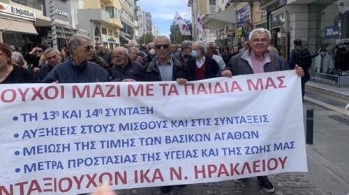 Read MoreΠαγκρήτιο συλλαλητήριο των συνταξιούχων στο Ηράκλειο στις 12 Μαρτίου