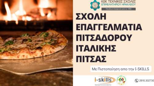 Έναρξη 20/11/2024 Ηράκλειο Τη μοναδική πιστοποίηση Επαγγελματία Πιτσαδόρου Ιταλικής Πίτσας από τον αναγνωρισμένο φορέα πιστοποίησης ISKILLS παρέχουν οι Τεχνικές Σχολές Επιμελητηρίου Ηρακλείου σε όσους επιθυμούν ν’ ασχοληθούν επαγγελματικά με την παρασκευή της αυθεντικής ιταλικής πίστας σε ξενοδοχεία και εστιατόρια, είτε διαθέτουν προηγούμενη εμπειρία είτε όχι. Παράλληλα, οι συμμετέχοντες με την ολοκλήρωση των σπουδών τους στη Σχολή θα λάβουν, Βεβαίωση Παρακολούθησης…