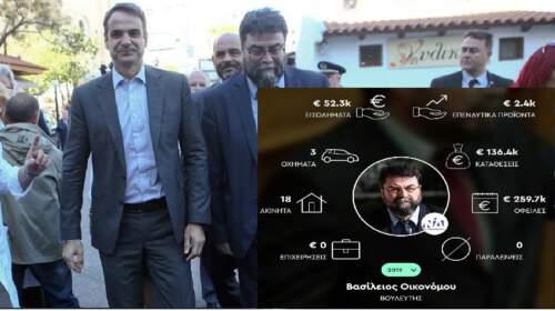 Ο βουλευτής της (αυτή την περίοδο, γιατί κάθε μερικά χρόνια κάνει γύρα στα κόμματα) ΝΔ Β. Οικονόμου που δεν γουστάρει τους «τσαμπατζήδες», χρωστάει €259.700, έχει €136.400 σε καταθέσεις, 3 αυτοκίνητα και 18 ακίνητα. Ο Βασίλης δεν είναι πλέμπα. Ούτε και το κόμμα του… Δείτε επίσης: «Το τσάμπα πέθανε»: Η εξοργιστική δήλωση του Β. Οικονόμου της ΝΔ για όσους δεν μπορούν…