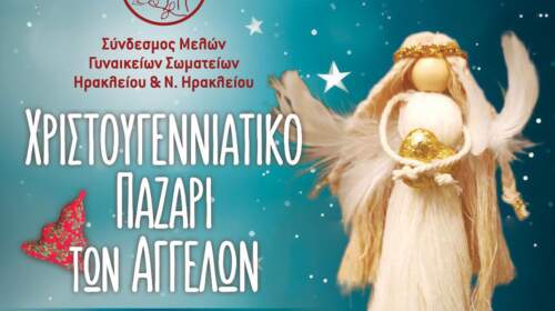 19 και 20 Δεκεμβρίου 2023 Για μια ακόμα χρονιά ο «Σύνδεσμος Μελών Γυναικείων Σωματείων Ηρακλείου και Ν. Ηρακλείου», δίνει το καθιερωμένο του ραντεβού με τα Χριστούγεννα, στο Αίθριο της Λότζια, την Τρίτη 19 και την Τετάρτη 20 Δεκεμβρίου 2023, 09.00-21.00. Σας προσκαλεί και σας περιμένει στο «ΧΡΙΣΤΟΥΓΕΝΝΙΑΤΙΚΟ ΠΑΖΑΡΙ ΤΩΝ ΑΓΓΕΛΩΝ» που έχει προετοιμάσει, για να κάνετε τις γιορτινές σας αγορές…