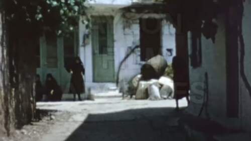Έγχρωμο βουβό φιλμ super 8mm. Athanasoglou N. Archive. Απόψεις του Μινωικού ανακτόρου της Κνωσού: η αυλή γύρω από την οποία αναπτύσσεται το Ανάκτορο, είσοδος στην Αίθουσα του Θρόνου, ο κινηματογραφιστής παριστάνει τον βασιλιά καθήμενος σ’ έναν ξύλινο θρόνο, Συνεχεία στη διαδρομή ανάμεσα από κίονες, πλάνα σε χαμηλότερο επίπεδο του ισογείου, η υπέροχη τοιχογραφία των Δελφινιών που διακοσμούσε τους τοίχους του μεγάρου της βασίλισσας, κίονες και πεσσοί…