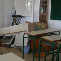 Βομβαρδισμένο τοπίο θυμίζουν αίθουσες του 1ου Γυμνασίου Ελευθερίου Βενιζέλου στα Χανιά, μετά το βανδαλισμό τους από αγνώστους. Μαθητές και καθηγητές έμειναν με το στόμα ανοιχτό σήμερα το πρωί όταν αντίκρισαν τις ζημιές στις αίθουσες του σχολείου. Οι βάνδαλοι ξέσπασαν τη μανία τους σε τρεις αίθουσες και στον εξωτερικό χώρο του σχολείου. Όπως φαίνεται στις φωτογραφίες που δημοσιεύει το zarpanews.gr , πέταξαν, αναποδογύρισαν…