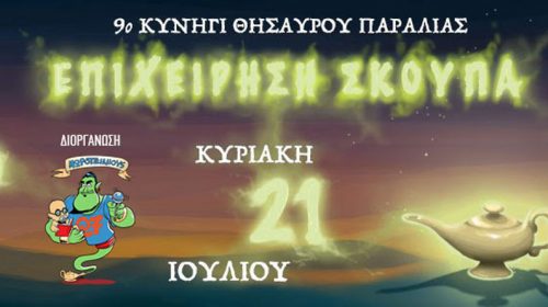 Στην Δημοτική Πλαζ Καρτερού «ΑΚΤΗ» Στην Δημοτική Πλαζ Καρτερού «ΑΚΤΗ» θα διεξαχθεί το 9ο Κυνήγι Θησαυρού Παραλίας με τίτλο «ΕΠΙΧΕΙΡΗΣΗ ΣΚΟΥΠΑ» από την διοργανώτρια ομάδα «Μωροτζίνιους» σε συνδιοργάνωση με την Περιφέρεια Κρήτης (Περιφερειακή Ενότητα Ηρακλείου) και υπό την αιγίδα του Δήμου Ηρακλείου και της ΔΗ.Κ.Ε.Η. Το παιχνίδι που έχει γίνει πλέον θεσμός για το Ηράκλειο θα ξεκινήσει την Κυριακή 21 Ιουλίου…