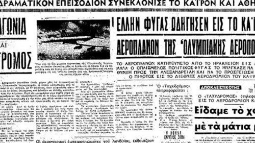 Read MoreΣαν χθες η πρώτη αεροπειρατεία σε ελληνικό έδαφος σε πτήση από Ηράκλειο – Κρητικός ο αεροπειρατής
