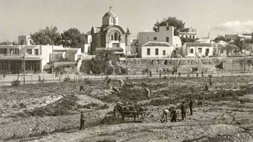 Η εικόνα μοιάζει απίστευτη, αλλά είναι το κέντρο του Ηρακλείου! Η περιοχή της Ανάληψης και της λεωφόρου Δημοκρατίας, λίγο μετά την κατοχή! Το μόνο που μπορεί να αναγνωρίσει κανείς είναι η εκκλησία. Πιθανότατα οι εργασίες που φαίνονται να κάνουν κάποιοι εργαζόμενοι αφορούν στη διαμόρφωση του πάρκου Γεωργιάδη, στη μνήμη του μάρτυρα δημάρχου Ηρακλείου, Μηνά Γεωργιάδη, τον οποίο εκτέλεσαν οι Γερμανοί…
