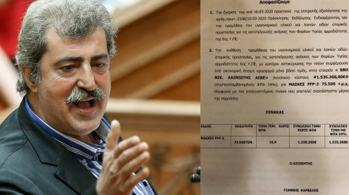Σοβαρή καταγγελία του Παύλου Πολάκη Σε μια σοβαρή καταγγελία προχώρησε με ανάρτηση του στο facebook, ο πρώην αναπληρωτής υπουργός Υγείας, βουλευτής Χανίων, Παύλος Πολάκης. Σύμφωνα με αυτή και τα έγγραφα που δημοσιεύει, ο Διοικητής της 6ης Υγειονομικής Περιφέρειας Πελοποννήσου, Ιονίων Νήσων -Ηπείρου – Δυτικής Ελλάδος, προχώρησε σε απευθείας ανάθεση 1.535.368 ευρώ για την προμήθεια 75.000 μασκών υψηλής προστασίας, τύπου FFP-3,…