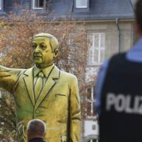 Η πόλη του Βισμπάντεν απέσυρε στη διάρκεια της περασμένης νύκτας, εξαιτίας της πολεμικής που προκαλούσε, ένα άγαλμα του αρχηγού του τουρκικού κράτους στο χρώμα του χρυσού που ήταν εγκαταστημένο στο κέντρο της πόλης στο πλαίσιο ενός φεστιβάλ τέχνης. «Σε συμφωνία με την αστυνομία, ο δήμος αποφάσισε την απόσυρση του αγάλματος επειδή η ασφάλεια γύρω απ’ αυτό δεν μπορούσε πλέον να…