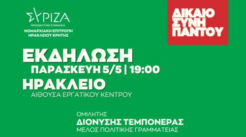 Εκδήλωση για το ασφαλιστικό με εισηγητή τον εργατολόγο Διονύση Τεμπονέρα, θα πραγματοποιήσει στο Εργατικό Κέντρο Ηρακλείου ο ΣΥΡΙΖΑ – ΠΣ, την Παρασκευή 5 Μαΐου και ώρα 7μμ. Στην εκδήλωση θα παρουσιαστούν οι προτάσεις του κόμματος για το ασφαλιστικό. Το κάλεσμα της Νομαρχιακής Επιτροπής Ηρακλείου του ΣΥΡΙΖΑ – ΠΣ: Για το ασφαλιστικό: «Ειπώθηκαν ψέματα που ντράπηκαν και τα ίδια» Η ΝΔ,…