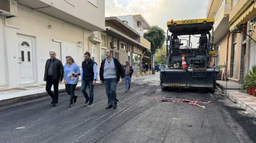 Στις εργασίες ασφαλτόστρωσης στα Καμίνια ο Δήμαρχος Ηρακλείου