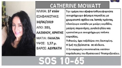 Μετά την εξαφάνιση της 60χρόνης Αμερικανίδας Eaton Suzanne, τα ίχνη της οποίας αγνοούνται από το πρωί της περασμένης Τρίτης όταν και ξεκίνησε πεζοπορία στην περιοχή του Κολυμβαρίου, μια ακόμα περίπτωση αγνοούμενης αλλοδαπής στην Κρήτη έρχεται στο φως, μετά την κήρυξη silver alert. Πρόκειται την 37χρονη Βρετανίδα, Catherine Mowatt, που αγνοείται από τις 30 Ιουνίου, όταν την είχαν δει στο Σίσι Λασιθίου. Η…