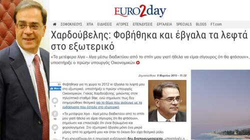 “Φοβήθηκα για τη χώρα το 2012 κι έβγαλα τα λεφτά μου στο εξωτερικό. Τα μετέφερα λίγα – λίγα μέσω διαδικτύου από το σπίτι μου γιατί ήθελα να είμαι σίγουρος ότι θα φτάσουν» δήλωνε το Μάρτιο του 2015 στο Star, για τις 56 δόσεις των 10.000 ευρώ που είχε βγάλει εκτός Ελλάδας το διάστημα 5/5/2012 με 17/6/2012 ο πρώην υπουργός Οικονομικών…