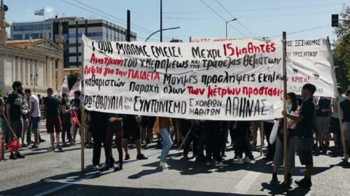 Στους δρόμους βρέθηκαν για μία ακόμα φορά οι μαθητές, σήμερα Πέμπτη 1 Οκτωβρίου, πραγματοποιώντας κινητοποιήσεις σε Αθήνα, Θεσσαλονίκη και πλήθος άλλων πόλεων της Ελλάδας με κύριο αίτημα τις ασφαλείς συνθήκες στα σχολεία εν μέσω νέας έξαρσης του κορονοϊού. Στο πλευρό τους συντάσσονται Ομοσπονδίες και Σωματεία εκπαιδευτικών και γονέων. Σύμφωνα με το alfavita.gr, στη διαδήλωση της Αθήνας, η αστυνομία αντιμετώπισε με χημικά…