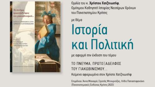Μια βραδιά υψηλού επιστημονικού και κοινωνικο-πολιτικού λόγου θα έχουν την ευκαιρία να απολαύσουν οι πολίτες του Ηρακλείου και της Κρήτης, την προσεχή Τετάρτη 19 Ιουνίου και ώρα 8μ.μ. στην Αίθουσα «Καστελλάκη» του Επιμελητηρίου Ηρακλείου (οδός Κορωναίου 9). Θα μιλήσει ο Ομότιμος Καθηγητής Ιστορίας Νεοτέρων Χρόνων του Πανεπιστημίου Κρήτης Χρήστος Χατζηιωσήφ, με θέμα: «Ιστορία και Πολιτική», με παραδείγματα από τον Ευρωπαϊκό…