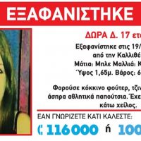Αίσιο τέλος είχε το θρίλερ με την εξαφάνιση της 17χρονης Δώρας από την Καλλιθέα, τα ίχνη της οποίας είχαν χαθεί στις 19 Απριλίου. Όπως αναφέρει σε ανακοίνωση του Το Χαμόγελο του Παιδιού, η 17χρονη εντοπίστηκε στην περιοχή της Κηφισιάς. Το Χαμόγελο του Παιδιού αναφέρει σε ανακοίνωσή του: “Η περιπέτεια της Δώρας Δ., 17 ετών, έληξε σήμερα δίνοντας τέλος στην αγωνία…