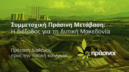Πρόταση Διαλόγου προς την τοπική κοινωνία: Συμμετοχική Πράσινη Μετάβαση, η διέξοδος για τη Δυτική Μακεδονία