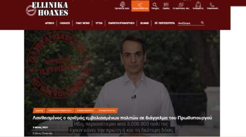 Read MoreΑκόμα και τα Ellinika Hoaxes εγκαλούν τον Μητσοτάκη ότι είπε ψέματα για τα εμβόλια! (βίντεο- εικόνες)
