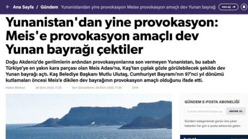 «Και πάλι πρόκληση από την Ελλάδα: σήκωσαν γιγαντιαία ελληνική σημαία για να προκαλέσουν» Για… προβοκάτσια κάνει λόγο ο τουρκικός Τύπος, αναφορικά με τη σημαία ύψους 40 μέτρων που κυματίζει από νωρίς το πρωί στο Καστελλόριζο. Δείτε επίσης: Ηρακλειώτες ύψωσαν τη μεγαλύτερη ελληνική σημαία στο Καστελόριζο (Βίντεο) Η φιλοκυβερνητική εφημερίδα, Yeni Safak, σχολιάζοντας το γεγονός κάνει λόγο για νέα πρόκληση από πλευράς…
