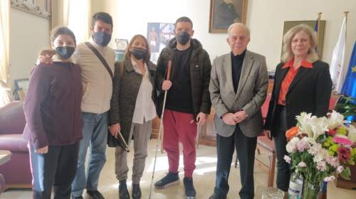 Συνάντηση με μέλη της Ένωσης Τυφλών Κρήτης είχε το πρωί της Τετάρτης 4 Ιανουαρίου ο Δήμαρχος Ηρακλείου Βασίλης Λαμπρινός , στο γραφείο του στη Λότζια, παρουσία της Γενικής Γραμματέως του Δήμου Ευγενίας Στυλιανού. Ο Πρόεδρος της Ένωσης Τυφλών Κρήτης Μενέλαος Μαρκοδημητράκης, συνοδευόμενος από την Γραμματέα Ελευθερία Ζαμπετάκη και το Μέλος Ανδρέα Τυμπακιανάκη, συζήτησε με τον Δήμαρχο τα ζητήματα που απασχολούν…