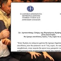 Το έκανε πάλι το “θαύμα” του ο Σταύρος Αρναουτάκης, νυν περιφερειάρχης Κρήτης. Αντιμετωπίζοντας εδώ και χρόνια την εποχή ως “μόνιμη προεκλογική περίοδο” και αναζητώντας συμμάχους για τις εκλογές της αυτοδιοίκησης, όλα τα σφάζει, όλα τα μαχαιρώνει. Όλα εκείνος τα κάνει στο νησί, αλλά για όλα τα κακά όλοι οι άλλοι φταίνε… Όλα αυτά, βέβαια, όταν δεν σπεύδει να φωτογραφηθεί με…