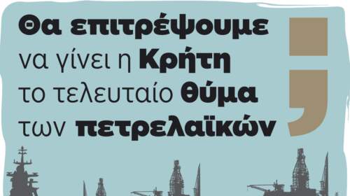 Το Σάββατο 9 Νοεμβρίου στις 6:30 μ.μ. Η Πρωτοβουλία Κρήτης ενάντια στις εξορύξεις υδρογονανθράκων θα πραγματοποιήσει εκδήλωση με θέμα «θα επιτρέψουμε να γίνει η Κρήτη το τελευταίο θύμα των πετρελαϊκών;», στο Εργατικό Κέντρο Χανίων, το Σάββατο 9 Νοέμβρη 2024 στις 6:30 το απόγευμα. Σε ανακοίνωση της Πρωτοβουλίας αναφέρεται: Είμαστε εν αναμονή της απόφασης των πετρελαϊκών εταιρειών ExxonMobil και Helleniq Energy,…
