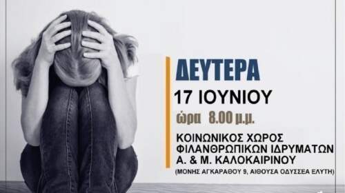 Δευτέρα 17 Ιουνίου, στις 8:00 μ.μ., στον Κοινωνικό Χώρο των Ιδρυμάτων Α. και Μ. Καλοκαιρινού, με ελεύθερη είσοδο Η Ομάδα Κοινωνικής Αλληλεγγύης των Εθελοντών της παράταξης «Δικαίωμα στην Πόλη» δίνει βήμα για δημόσιο διάλογο τη Δευτέρα 17 Ιουνίου 2024 και ώρα 8:00 μ.μ., στον Κοινωνικό Χώρο των Ιδρυμάτων Α. και Μ. Καλοκαιρινού με θέμα «Βία, ένα φαινόμενο με χίλια πρόσωπα.…