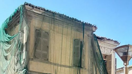 Μπροστά στο εγκαταλελειμμένο διατηρητέο κτήριο στον Άγιο Μηνά για να στείλουν το μήνυμα της επικινδυνότητας