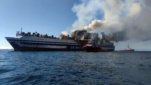 Σοκάρουν οι εικόνες από τα καμένα φορτηγά που ανασύρονται από τα γκαράζ του Euroferry Olympia. Είναι το πλοίο που τα ξημερώματα της 18ης Φεβρουαρίου τυλίχθηκε στις φλόγες ανοιχτά της Κέρκυρας. Υπενθυμίζεται πως το τελευταίο 24ωρο, εντοπίστηκε από την ΕΜΑΚ που επιχειρούσε στο πρώτο γκαράζ του Euroferry Olympia, άλλη μία σορός. Πλέον οι νεκροί ανέρχονται σε εννέα, ενώ οι έρευνες συνεχίζονται για τον…