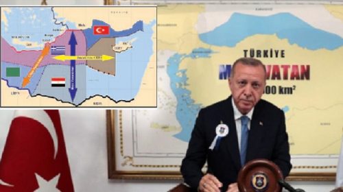 «Γεννήθηκε» το 2006 ως «όραμα», προτού αποτυπωθεί σε ανεπίσημους χάρτες το 2011. Σήμερα, οχτώ χρόνια μετά, η καλούμενη «Γαλάζια Πατρίδα», καδραρισμένη πλέον πίσω από τον πρόεδρο Ερντογάν, επεκτείνει τα όρια των τουρκικών διεκδικήσεων πέρα από κάθε έννοια διεθνούς δικαίου ή καλής γειτονίας… αν και κάποιοι Τούρκοι διπλωμάτες επιλέγουν ακόμη να μην την παρουσιάζουν επισήμως στις συναντήσεις με τους Ευρωπαίους συναδέλφους…