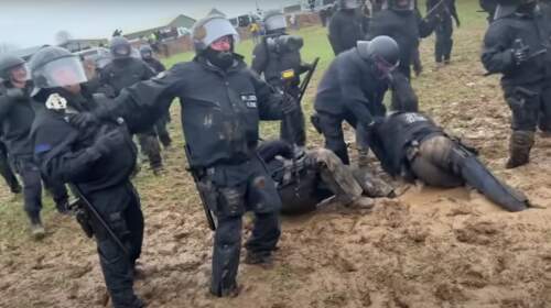 Οι αστυνομικοί κόλλησαν στη λάσπη και μάταια έσπρωχνε ο ένας τον άλλο προσπαθώντας να ξεκολλήσουν, με αποτέλεσμα να πέφτουν σαν… ντόμινο, την ίδια ώρα που δέχονταν λάσπες και από τους ακτιβιστές Λίγο πριν «πέσει» το χωριό Λούτσερατ στο Ντίσελντορφ της Γερμανίας, διαδραματίστηκαν σφοδρές συγκρούσεις ανάμεσα σε αστυνομικούς και διαδηλωτές – ακτιβιστές που το είχαν «καταλάβει». Οι διαδηλωτές – ακτιβιστές εδώ και…