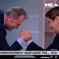 Όλα είναι ένα σόου για κάποιους. Για τηλεθέαση, για “πέρασμα” στην κοινή γνώμη. Ο δημοσιογράφος του ΣΚΑΪ, Δημήτρης Οικονόμου, είχε καλεσμένο τον βουλευτή Ηρακλείου και γραμματέα της ΠΕ της ΝΔ, Λευτέρη Αυγενάκη. Και πριν ξεκινήσει η συνέντευξη ο δημοσιογράφος αποκάλεσε τον εκπρόσωπο της ΝΔ, φίλο του, ενώ στη συνέχεια έκαναν και έναν “αγώνα” μπραντεφέρ στο πλατό, στο οποίο ο δημοσιογράφος της εκπομπής…