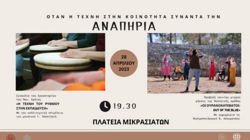 Μια συνεργασία του Συλλόγου γονέων και φίλων ατόμων με αυτισμό Ρεθύμνου με την ομάδα κρουστών του προγράμματος «Η τέχνη του ρυθμού στην εκπαίδευση» Ο Σύλλογος γονέων και φίλων ατόμων με αυτισμό Ρεθύμνου κλείνει γιορτινά τον Απρίλη , μήνα ευαισθητοποίησης για τον αυτισμό με μια μεγάλη εκδήλωση την Παρασκευή 28 Απριλίου 2023 , στις 19.30 μ.μ. στην Πλατεία Μικρασιατών. Η εκδήλωση…