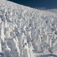 Στις πλαγιές του βουνού Zaō, στην κεντρική Ιαπωνία, οι κρύοι, υγροί άνεμοι που προέρχονται από τη Σιβηρία τείνουν να δημιουργούν ένα φυσικό θαύμα που προσελκύει χιλιάδες τουρίστες κάθε χειμώνα από όλη την Ιαπωνία. Τα σταγονίδια νερού που μεταφέρει ο ισχυρός άνεμος παγώνουν πάνω στα πεύκα του βουνού Zaō και στα κλαδιά τους σχηματίζεται μια επικάλυψη από πάγο. Όταν στα πεύκα από…