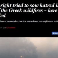 Οι επικριτές στο εσωτερικό της χώρας αλλά και στο εξωτερικό ήδη χρησιμοποιούν την καταστροφή για πολιτικά παιχνίδια, διεκδικώντας επαίνους για τους ίδιους, που επισκιάζουν τους πραγματικούς ήρωες – συμπεριλαμβανομένων και των μεταναστών, γράφει η βρετανική εφημερίδα Independent. «Ο πραγματικός χαρακτήρας της ελληνικής ακροδεξιάς ήταν εμφανής αλλού. Τρία μέλη της συνελήφθησαν για λεηλασία κατοικιών των πυρόπληκτων ενώ άλλη ομάδα φασιστών επιτέθηκε σε…