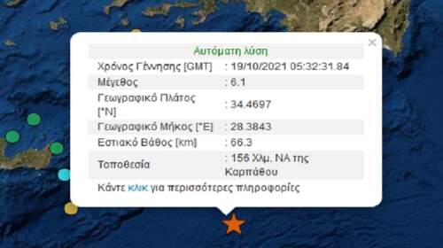 Read MoreΙσχυρός σεισμός 6,1 Ρίχτερ στην Κάρπαθο αισθητός και στην Κρήτη- Στα 6,4 τον δίνει το Ευρωμεσογειακό