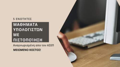 5 ενότητες. Έναρξη 20/05/2024 Νέο σεμινάριο υπολογιστών για όσους θέλουν ν’ αποκτήσουν την πιστοποίηση που αναγνωρίζει ο ΑΣΕΠ και το Ελληνικό Δημόσιο, διοργανώνει το ΚΕΚ ΤΕΧΝΙΚΕΣ ΣΧΟΛΕΣ ΕΠΙΜΕΛΗΤΗΡΙΟΥ ΗΡΑΚΛΕΙΟΥ. Οι συμμετέχοντες θα εκπαιδευτούν στις 5 ενότητες word – excel – windows -I Internet – powerpoint, αποκτώντας δεξιότητες απαραίτητες στην καθημερινότητά τους και θα προετοιμαστούν κατάλληλα, ώστε να επιτύχουν στις εξετάσεις…