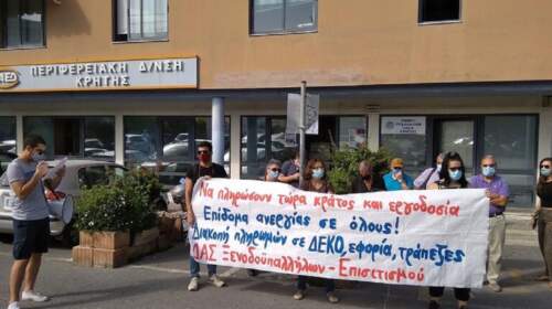 (φωτο από παλιότερη κινητοποίηση) Παράσταση διαμαρτυρίας στην Περιφερειακή Διεύθυνση του ΟΑΕΔ, στο Ηράκλειο, οργανώνουν αύριο Δευτέρα 1η Φεβρουαρίου στις 9 πμ., η Ένωση Ιδιωτικών Υπαλλήλων Ηρακλείου, η Δημοκρατική Αγωνιστική Συνεργασία Ξενοδοχοϋπαλλήλων Ν. Ηρακλείου και η Δημοκρατική Αγωνιστική Συνεργασία Επισιτισμού – Τουρισμού Ν. Ηρακλείου. Σε ανακοίνωση αναφέρουν: ΤΕΡΜΑ ΠΙΑ ΣΤΗΝ ΚΟΡΟΙΔΙΑ ΕΔΩ ΚΑΙ ΤΩΡΑ – ΕΙΣΟΔΗΜΑ ΓΙΑ ΟΛΟΥΣ Όλοι στην παράσταση διαμαρτυρίας τη Δευτέρα…