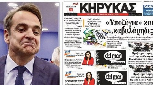 Επειδή ο καθένας κρίνεται όχι από τις διακηρύξεις του αλλά – εφόσον έχει παρελθόν, βίο και πολιτεία- από την “περπατησιά” του, ας θυμηθούμε την σκανδαλώδη, για τον ίδιο τον Κυριάκο Μητσοτάκη, υπόθεση των δανείων του «Κήρυκα», της εφημερίδας που είχε έδρα τα Χανιά. Πρόκειται για κλασική περίπτωση που δείχνει πώς το πολιτικό και μιντιακό σύστημα δεν πλήρωνε τα δάνειά του.Ο…