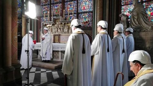 Μόλις 45 λεπτά ήταν η διάρκεια της πρώτης λειτουργίας που τελέστηκε σήμερα το απόγευμα στον καθεδρικό ναό της Παναγίας των Παρισίων, δύο μήνες έπειτα από την καταστροφική πυρκαγιά που συγκλόνισε τον πλανήτη. Οι παρευρισκόμενοι φορούσαν προστατευτικά κράνη προκειμένου να αποφευχθεί κάποιος τραυματισμός. Ο Αρχιεπίσκοπος του Παρισιού Μισέλ Οπετί, με λευκά ράσα και προστατευτικό κράνος στο κεφάλι χοροστάτησε στην τελετή που…