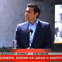 Δείτε την ομιλία του πρωθυπουργού στο Αγρόκτημα του Παλημνιακού Ταμείου στο Λιβαδοχώρι Λήμνου: Η ασφάλεια, η διαφύλαξη των συνόρων και της εδαφικής μας ακεραιότητας είναι το πρώτο καθήκον της κυβέρνησης, απέναντι στη Λήμνο και όλες τις ακριτικές περιοχές της χώρας, και το δεύτερο είναι η βελτίωση της ποιότητας της ζωής των ανθρώπων που ζουν σε αυτές, τόνισε ο πρωθυπουργός Αλέξης Τσίπρας,…