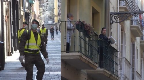 Οι σκηνές είναι από την Ισπανία. Στην Παμπλόνα κάτοικοι βγήκαν στα μπαλκόνια τους σε μια “διαδήλωση” κατά της παρουσίας του στρατού στους δρόμους. Από τα μπαλκόνια τους έδωσαν το δικό τους μήνυμα, χτυπώντας κατσαρόλες και άλλα αντικείμενα.
