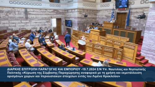 Στη συζήτηση για την «Κύρωση της Σύμβασης Παραχώρησης αναφορικά με τη χρήση και εκμετάλλευση ορισμένων χώρων και περιουσιακών στοιχείων εντός του Λιμένα Ηρακλείου» Καίρια παρέμβαση για τα προβλήματα που αντιμετωπίζουν οι επιχειρήσεις του Νομού Ηρακλείου σχετικά με τη λειτουργία του Λιμένος Ηρακλείου και τις παρεμβάσεις που πρέπει να γίνουν από τη νέα διοικητική αρχή, έκανε ο Πρόεδρος του Επιμελητηρίου Ηρακλείου…