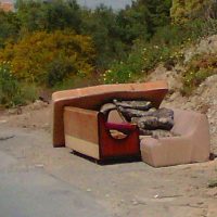 Η εικόνα είναι από την οδό Παύλου Ζωγραφιστού, στο Ηράκλειο. Το σημείο έχει μετατραπεί σε ένα μόνιμο σκουπιδότοπο, παρά την προσπάθεια της υπηρεσίας καθαριότητας του δήμου να σταματήσει αυτό το φαινόμενο. Μόλις μαζευτούν τα σκουπίδια, κάποιοι σπεύδουν και πετούν άλλα. Αυτή τη φορά όμως τα σκουπίδια είναι… “ιδιαίτερα”! Ο αθεόφοβος πήγε νύχτα και πέταξε όλη την οικοσκευή του. Σαλόνι, μαξιλάρες,…