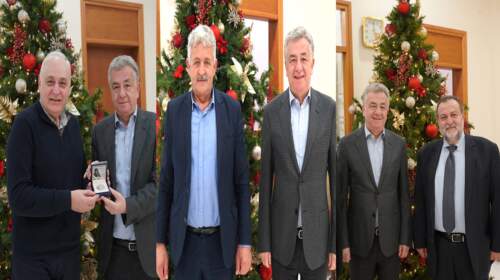 Οι Δήμαρχοι Βιάννου, Παύλος Μπαριτάκης, Μινώα Πεδιάδας, Βασίλης Κεγκέρογλου και Οροπεδίου Λασιθίου, Γιώργος Αθανασάκης, επισκέφθηκαν σήμερα τον Περιφερειάρχη Κρήτης Σταύρο Αρναουτάκη. Στη συνάντηση με τον Δήμαρχο Βιάννου συζητήθηκαν τα αναπτυξιακά θέματα του Δήμου που στηρίζει και χρηματοδοτεί η Περιφέρεια Κρήτης. Στο πλαίσιο ανταλλαγής ευχών για τα επερχόμενα Χριστούγεννα, ο Δήμαρχος Βιάννου Παύλος Μπαριτάκης πρόσφερε στον Περιφερειάρχη Σταύρο Αρναουτάκη το συλλεκτικό…