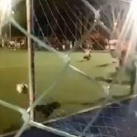Απίθανο σκηνικό σε ποδοσφαιρικό αγώνα 8Χ8 στη Βραζιλία. Τη στιγμή που ο παίκτης μίας ομάδας εκτελεί πέναλτι, ένας σκύλος περνά ακριβώς πάνω στην γραμμή του τέρματος και… αποκρούει το πέναλτι. Φυσικά το βίντεο κάνει το γύρο του διαδικτύου. Δεν έγινε γνωστό αν τελικά… μέτρησε το πέναλτι. Δείτε το βίντεο: enikos.gr