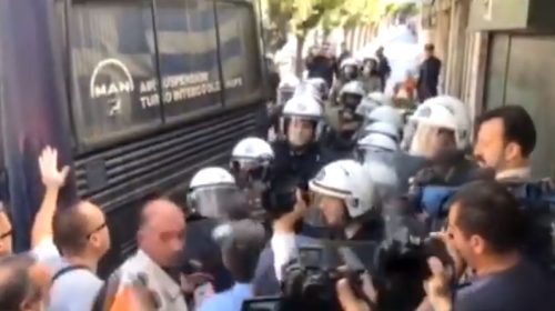 Πορεία από τα κεντρικά γραφεία της ΠΟΕ – ΟΤΑ στην πλατεία Καραϊσκάκη στην Βουλή, όπου σήμερα αναμένεται να ψηφιστεί το «αναπτυξιακό» νομοσχεδίου, πραγματοποιεί πλήθος διαδηλωτών στο πλαίσιο της 24ωρης απεργίας στην Τοπική Αυτοδιοίκηση. Μικροένταση επικράτησε πριν από λίγο έξω από τη Βουλή, όταν μέλη της Ομοσπονδίας επιχείρησαν να σπάσουν τον αστυνομικό κλοιό και απωθήθηκαν από τους αστυνομικούς. Οι εργαζόμενοι διαμαρτύρονται…