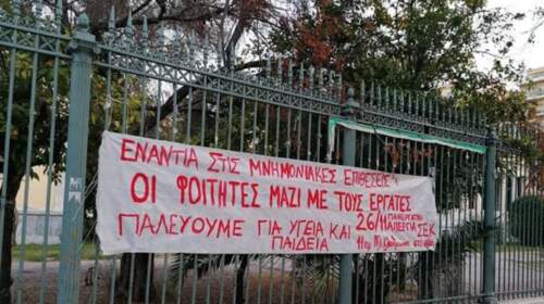 Προσαγωγή φοιτήτριας (και του συγκατοίκου της!) για ανάρτηση πανό στο Πολυτεχνείο για την απεργία στις 26 Νοέμβρη καταγγέλλει το Σοσιαλιστικό Εργατικό Κόμμα (ΣΕΚ). Αναλυτικά η ανακοίνωση που εξέδωσε το ΣΕΚ το απόγευμα της Δετέρας 23/11/: Η ΕΛΑΣ προχώρησε στην προσαγωγή στη ΓΑΔΑ φοιτήτριας και μέλους του Σοσιαλιστικού Εργατικού Κόμματος η οποία μαζί με άλλους φοιτητές είχε αναρτήσει πανό με κάλεσμα…
